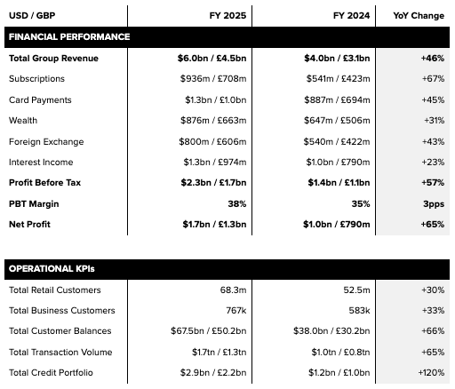 Revolut achieved its strongest results to date by balancing rapid growth with structural margin expansion and deep revenue diversification.